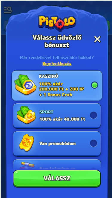 Az első befizetés után a „Bónuszok” menüben aktiválhatod az ajánlatokat.