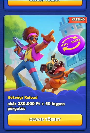 4) Heti Reload – 50 ingyen pörgetés (hétfő–csütörtök)